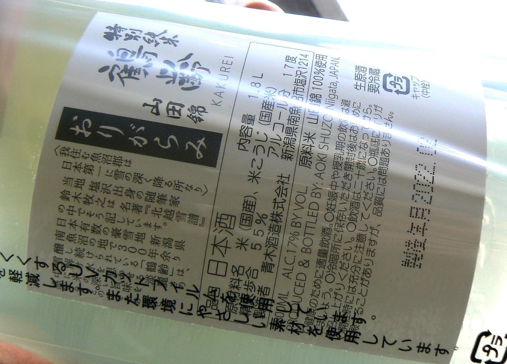 ◆鶴齢“無濾過”山田錦55“おりがらみ”1.8L 3,400円(税込3,740円)