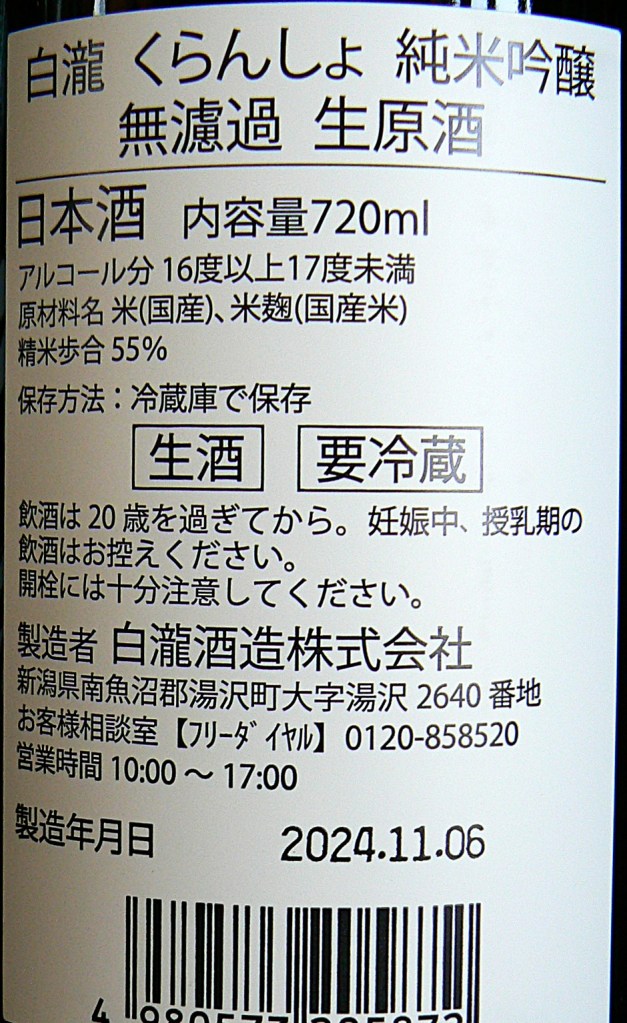 地元限定発売の 白瀧《無濾過》くらんしょ 入荷いたしました。